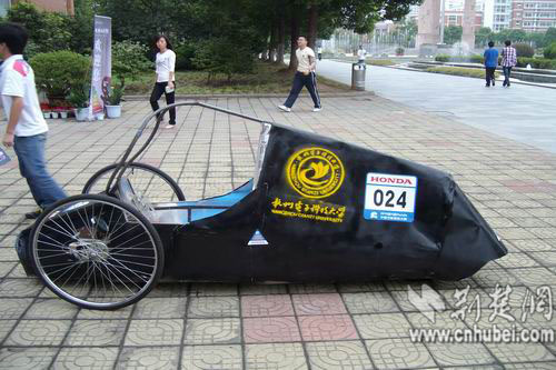 图为:学生自己发明的节能环保车