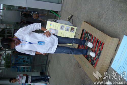 图为:学生现场展示全自动擦鞋底器
