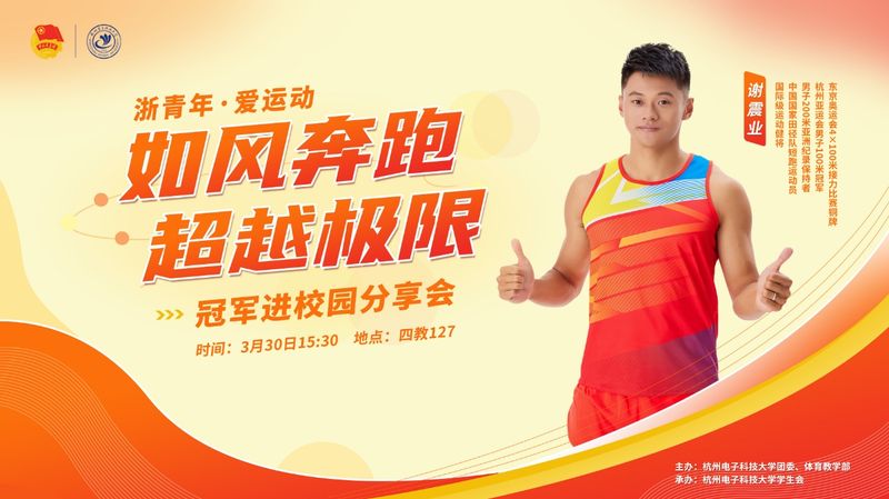 谢震业 中国短跑运动员,男子200米亚洲纪录保持者,主攻100米、200米及4×100米接力。以卓越的后程加速和弯道技术闻名,2019年在钻石联赛伦敦站以19.88秒打破200米亚洲纪录,成为首位突破20秒大关的亚洲本土选手,同年闯入多哈世锦赛200米决赛(亚洲选手21年来首次)。2020年东京奥运会,他与队友以37.79秒获男子4×100米接力铜牌;2023年杭州亚运会以9.97秒首夺男子100米金牌,多次刷新接力亚洲纪录。